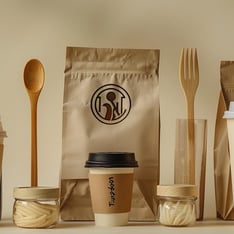 Description: Custom eco-friendly straws and paper cups, ideal for coffee shops and dining brands. Available in biodegradable materials, with cup sleeves and straw packaging that can feature your brand's logo, enhancing visual recognition.