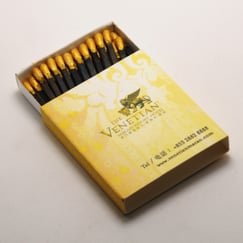 Custom design, eco-friendly materials, brand recognition, personalized matchboxes, refined craftsmanship