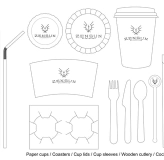 Eco-friendly bags, reusable cups, custom coasters, cup sleeves, brand