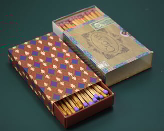 Description: Luxury long wooden matches, ideal for lighting cigars, candles, and incense. The matchbox features a refined premium finish, with options for leather, metal, or wood exteriors. Custom-designed for hotels, clubs, and upscale venues to meet their specific needs.